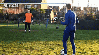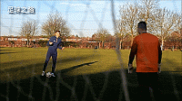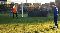 同样这个思路在不同场景下可以灵活应用,如果你是右脚球员打左侧,我们首先带球朝向他,他如果没出来只是用脚步保持封堵,我们就可以调动他,作为守门员他首先要封堵近门柱,这也是门将常常被教育的观念,因为不能在近门柱被击败。