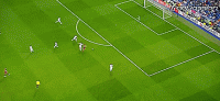 我们可以看到在联赛中大多数的顶级前锋都会将球拨到一侧,让远门柱暴露出来,然后横穿球门打远角,这时守门员就很难扑救。这种射门也可以说是每一名职业前锋的基本功。