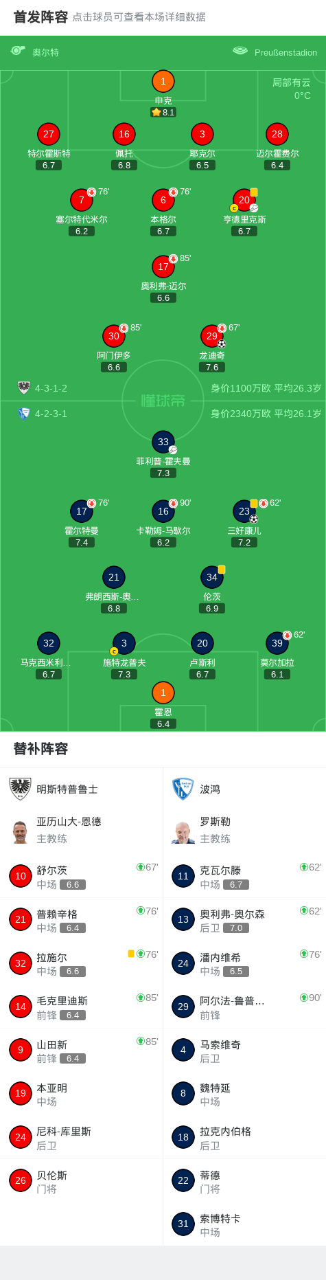明斯特普鲁士1-1波鸿,龙迪奇打破僵局,三好康儿救主