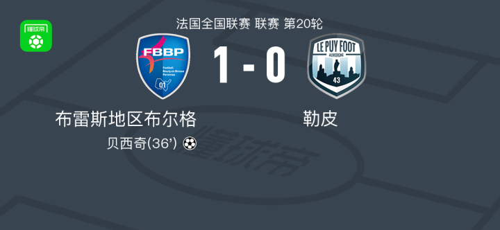 布雷斯地区布尔格1-0勒皮,贝西奇一锤定音