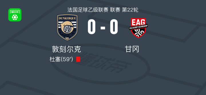 敦刻尔克0-0甘冈,双方破门乏术战报bot @懂球帝02-07 04:53北京时间2月7日法国足球乙级联赛 联赛 第22轮,敦刻尔克主场对阵甘冈。最终比分敦刻尔克 0-0 甘冈。点击查看本场比赛详细数据>>点击查看法乙完整积分榜>>精彩瞬间第59分钟,敦刻尔克球队杜塞吃到红牌。 球队阵容 技术统计 展开更多