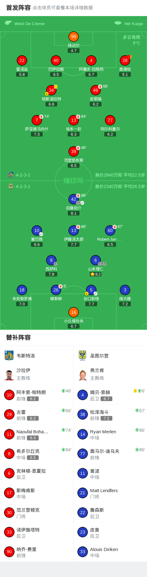 圣图尔登4-0大胜韦斯特洛,山本理仁双响,后藤启介破门