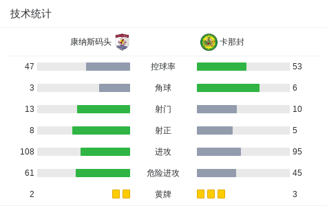 下半场补时第3分钟,卡那封球员布拉德利打入一球。
