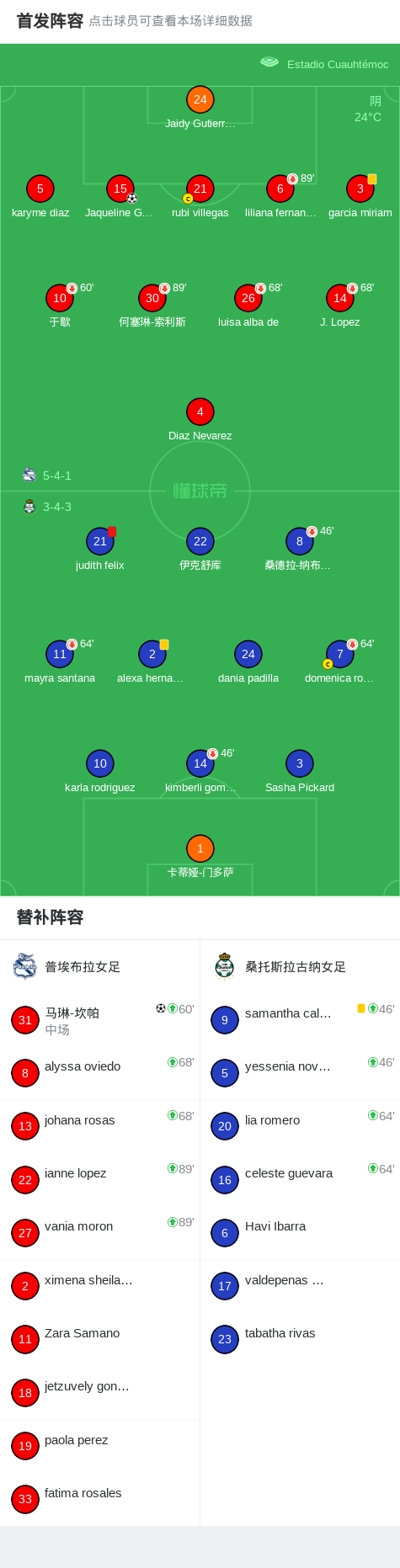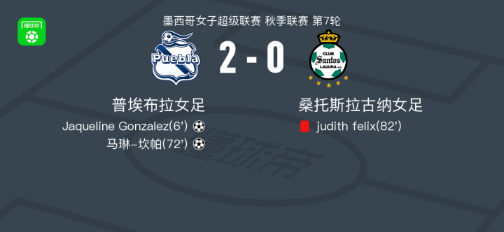 普埃布拉女足2-0拉古纳女足,Jaqueline Gonzalez破门,马琳-坎帕锁定胜局