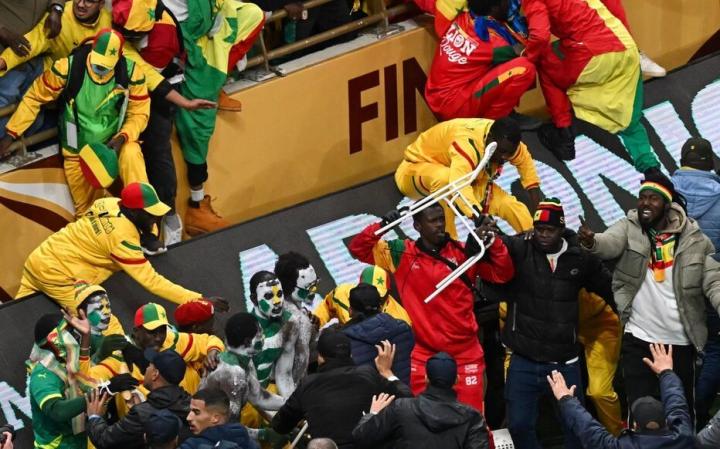 紧张情绪也迅速蔓延至看台。多名塞内加尔球迷试图冲入场内,持续时间接近15分钟,甚至发生在摩洛哥球员卜拉欣-迪亚斯准备主罚点球时。最终,迪亚斯将这粒点球罚失。