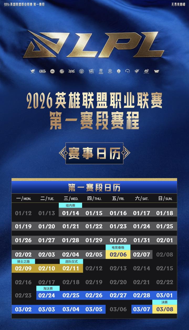 2026LPL第一赛段淘汰赛2月24日开打,决赛安排在3月8日