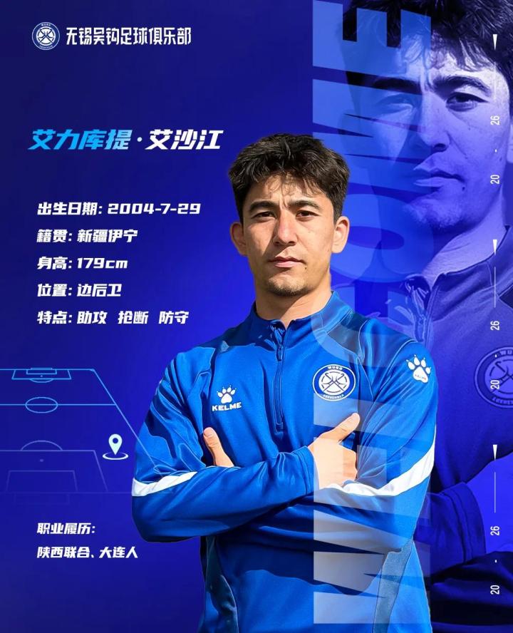 球员心声:“很高兴能加入无锡吴钩这个纯粹的团队。我将竭尽全力,在中场为球队贡献防守硬度和进攻创造力。新的挑战,我义不容辞,为无锡而战!”