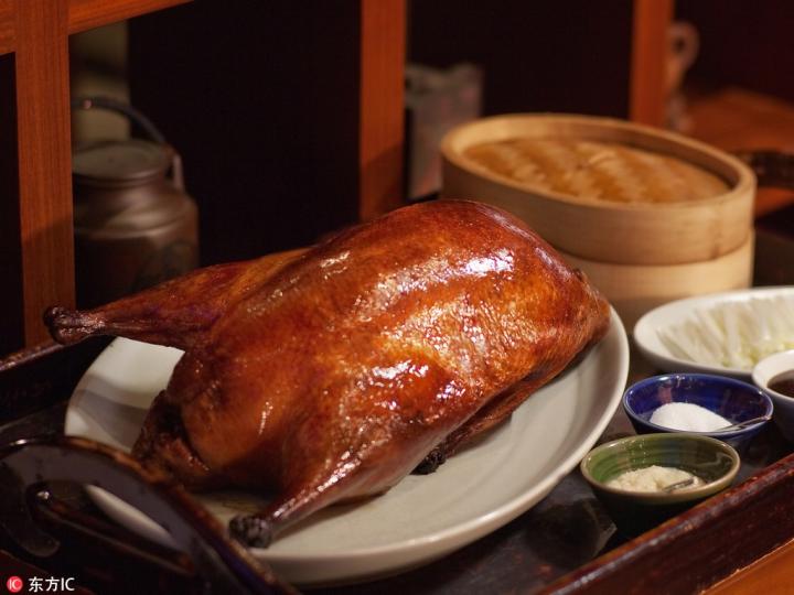 北京最负盛名的美食当然是烤鸭。北京烤鸭,取材于优质的肉食鸭北京鸭,分挂炉烤鸭和焖炉烤鸭两种。挂炉烤鸭有炉门,先点燃燃料,炉内达到一定程度后灭火,再将鸭子放入,用热力烤熟鸭子,无明火,不转动鸭子。焖炉烤鸭没有炉门,以果木为原料,烤制时需不断转动鸭子。挂炉烤鸭片鸭后每一块肉上都有皮,而焖炉烤鸭片鸭后骨肉分离。北京烤鸭鸭皮油香酥脆,鸭肉柔嫩,肥而不腻。