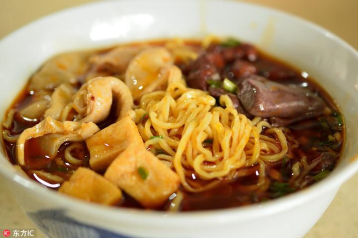 肠旺面是贵州当地的一种名面。所谓肠旺面,肠是猪大肠,旺是猪血。特点是血嫩、面脆、辣香、汤鲜,红而不辣、油而不腻、脆而不生。