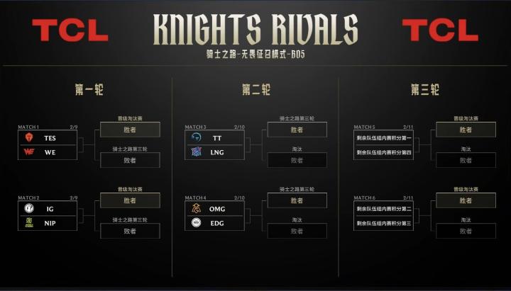 LPL骑士之路:iGvsNIP,TESvsWE,败者第三天打生死战David_Ro2026-02-07 21:06北京时间2月7日,LPL加赛当中,NIP2-0横扫WE,拿下了坚毅组头名。这场比赛的胜利也让他们确认了骑士之路的对手为iG。骑士之路将于北京时间2月9日到11日三天里进行,八支战队里四支将进入淘汰赛,四支将结束第一赛段的征程。2月9日第一轮TES vs WEiG vs NIP2月10日第二轮TT vs LNGOMG vs EDG2月11日第三轮第一轮败者vs第二轮胜者展开更多