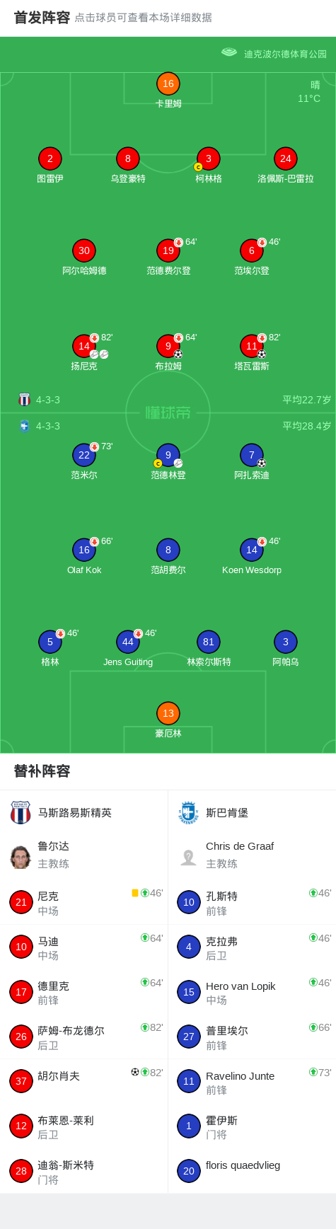 下半场补时第3分钟,斯巴肯堡球员范德林登助攻阿扎索迪打入一球。