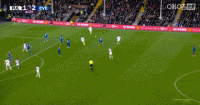 第75分钟,霍尔中路抢点,低射扳平比分,富勒姆1-1埃弗顿