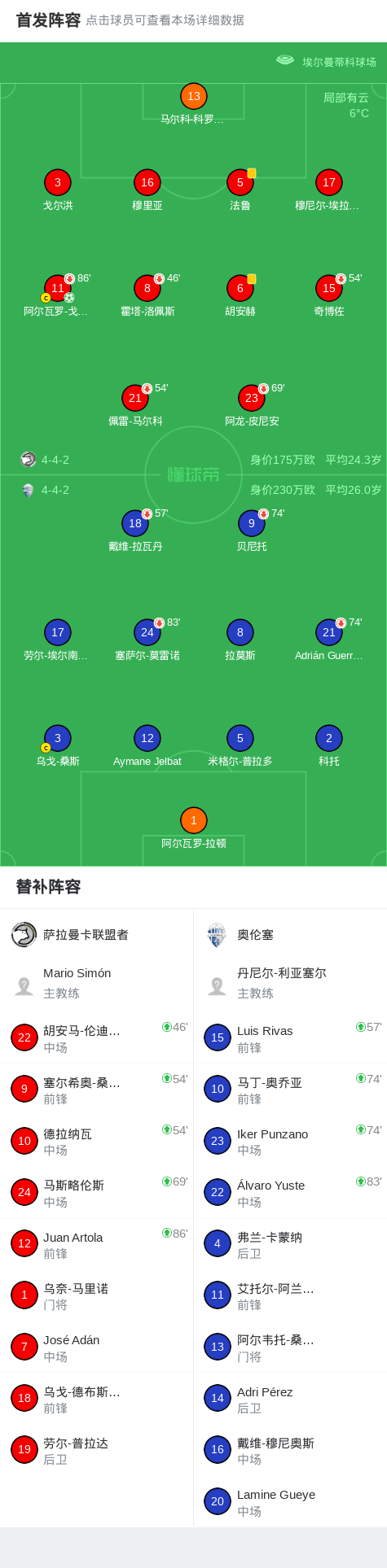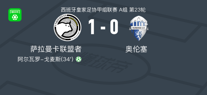萨拉曼卡联盟者1-0奥伦塞,阿尔瓦罗-戈麦斯点射制胜战报bot @懂球帝02-08 03:26北京时间2月8日西班牙皇家足协甲组联赛 A组 第23轮,萨拉曼卡联盟者主场对阵奥伦塞。萨拉曼卡联盟者阿尔瓦罗-戈麦斯破门。最终比分萨拉曼卡联盟者 1-0 奥伦塞。点击查看本场比赛详细数据>>点击查看西协甲完整积分榜>>精彩瞬间第34分钟,萨拉曼卡联盟者球员阿尔瓦罗-戈麦斯罚入点球。 球队阵容 技术统计 展开更多