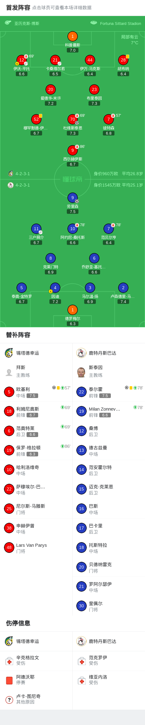 第44分钟,锡塔德幸运球员伊沃-平托助攻杜维斯泰恩打入一球。