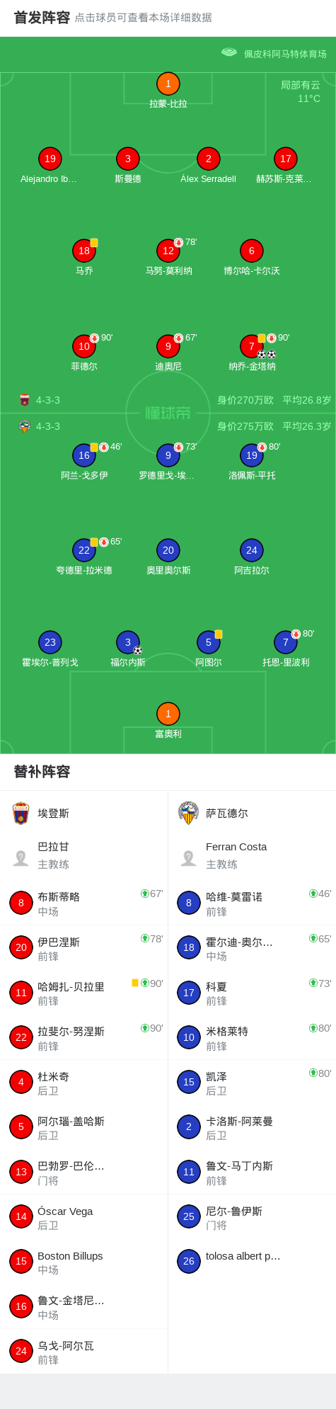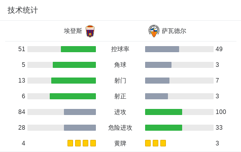 第72分钟,萨瓦德尔球员福尔内斯打入一球。
