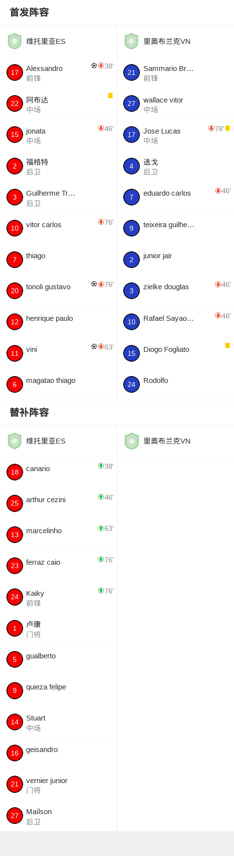 维托里亚ES3-0大胜里奥布兰克VN,tonoli gustavo、Alexsandro破门