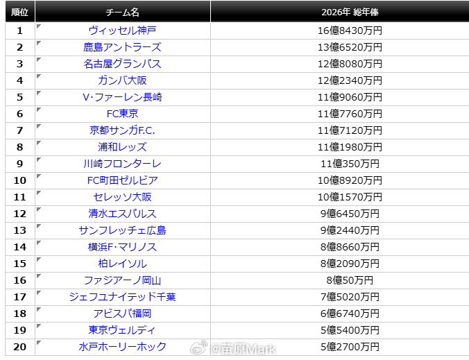 2月8日,媒体人苗原发布微博谈到了日本J1联赛的球员平均工资。他表示,根据一份媒体渠道的日职联球员薪资数据显示,其中J1联赛球员平均年薪约132万人民币,356人年薪超百万人民币。