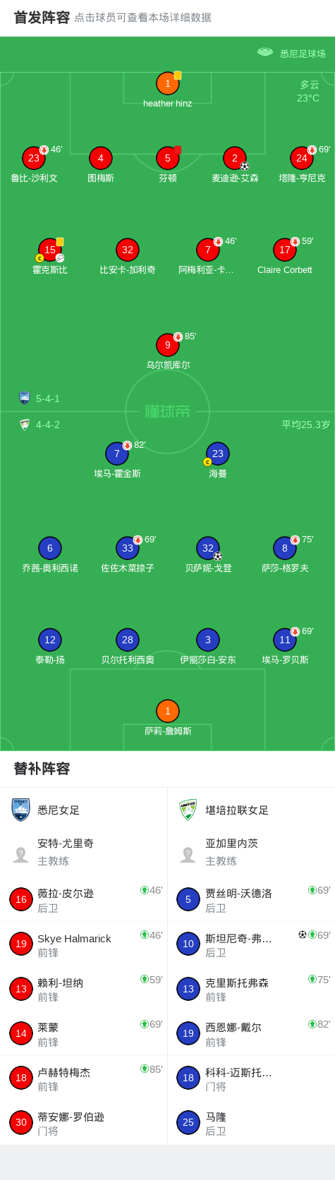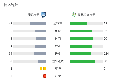 第62分钟,悉尼女足球队芬顿吃到红牌。