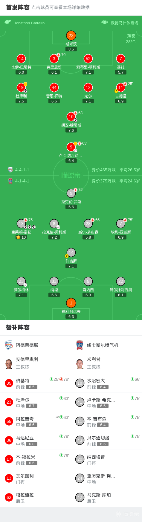 阿德莱德联三度中框2-3纽卡斯尔喷气机,泰勒戴帽,古德温伤退