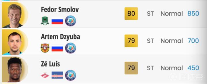在俄超的锋线球员中,斯莫洛夫拥有80的总评,超越久巴,高居第一。对于大多数进攻球员来说,速度和射术是首先要考虑的两项属性。速度87 射术80,对于锋线球员来说是相当拿得出手的成绩。187cm的身高使他拥有良好的中锋版型。更加难得的是,作为俄超第一中锋的他,在转会市场的价值仅仅是800金币。