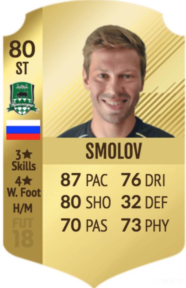 对于《FIFA》FUT的玩家来说,如果不以五大联赛球员起步,而是选择俄超作为起点。那么斯莫洛夫绝对是一名性价比极高的球员。