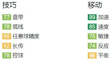 他拥有双速85+,在使用Hawk猎鹰卡后,他的速度将达到惊人的94。在相似球员推荐列表中,他接近默滕斯,斯图里奇,维尔贝克。速度和灵活是他的法宝。他拥有盘带(77)控球(78),可以在控制流4-3-3阵型中出任前锋。