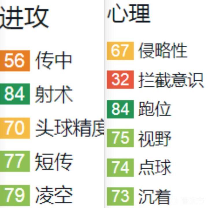 (图:斯莫洛夫在《FIFA18》中的进攻和心理属性)