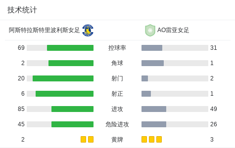 阿斯特拉斯特里波利斯女足0-0AO雷亚女足,两队破门乏术战报bot @懂球帝02-08 21:24北京时间2月8日希腊女子足球超级联赛,阿斯特拉斯特里波利斯女足主场对阵AO雷亚女足。最终比分阿斯特拉斯特里波利斯女足 0-0 AO雷亚女足。点击查看本场比赛详细数据>> 技术统计 展开更多