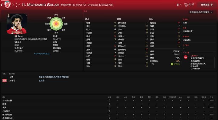FM2018中,萨拉赫也是埃及能力值最高的球员,172的CA让他比第二名高出了整整30点,而他夏天才满26岁,刚刚进入职业生涯的黄金年龄,预计还会有很长的巅峰期。