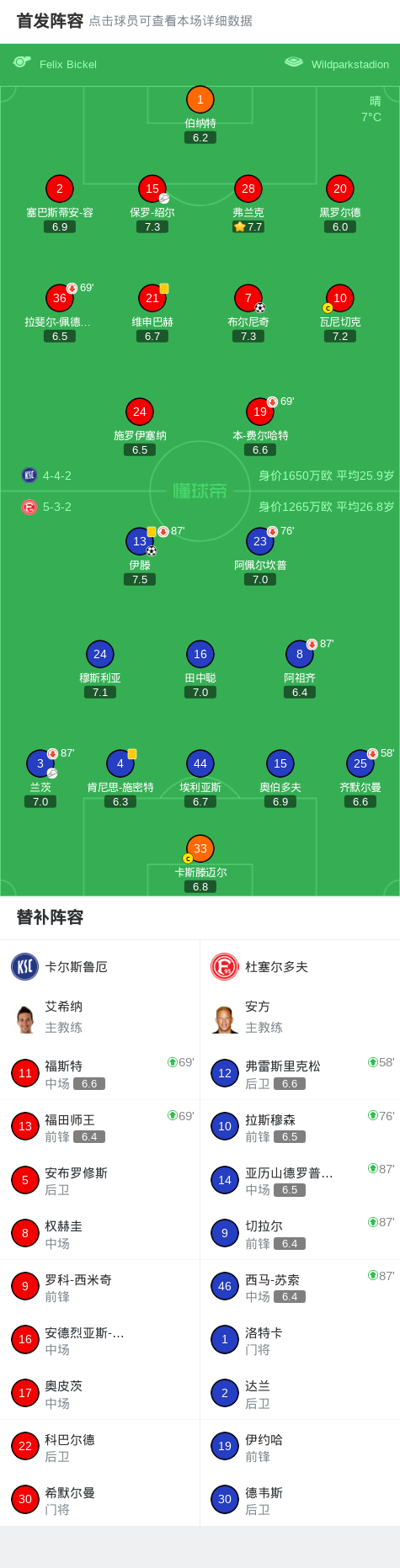 卡尔斯鲁厄1-1杜塞尔多夫,伊滕先拔头筹,布尔尼奇救主