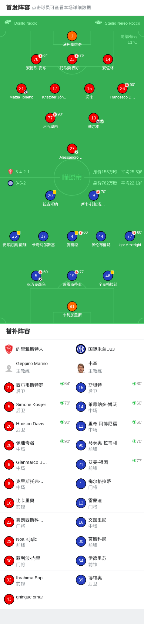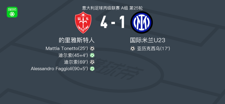 的里雅斯特人4-1大胜国际米兰U23,迪尔索梅开二度,Alessandro Faggioli点射