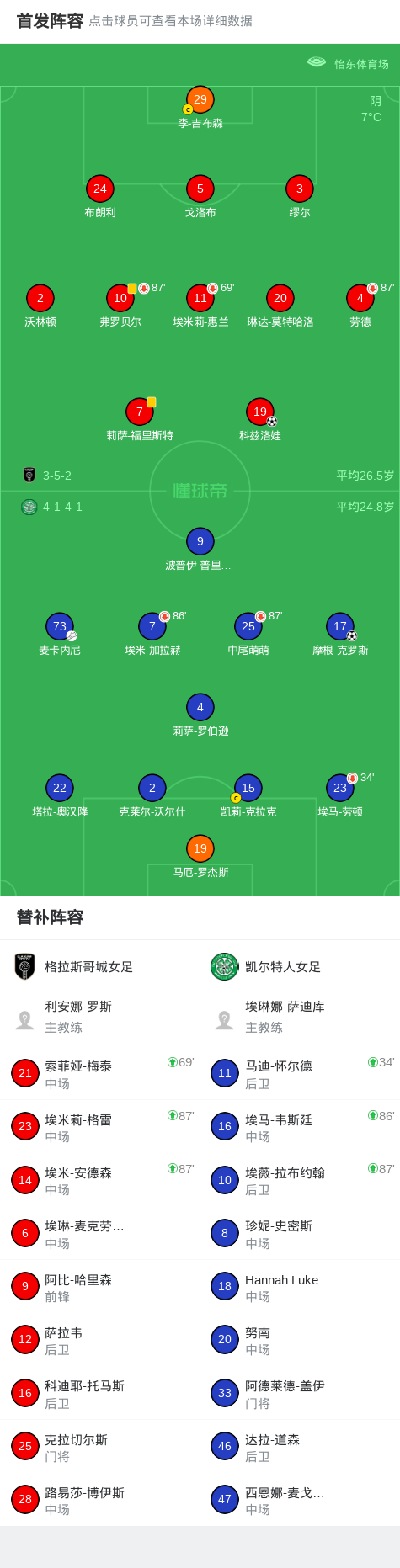 第75分钟,凯尔特人女足球员麦卡内尼助攻摩根-克罗斯打入一球。