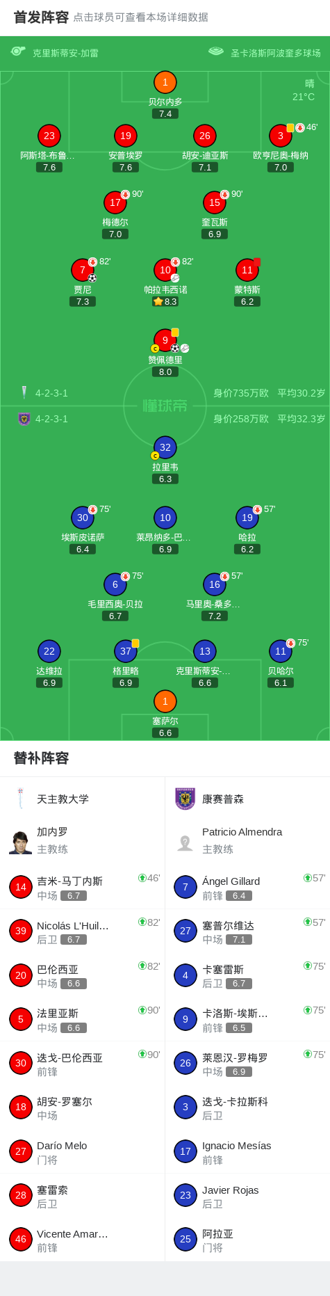 第71分钟,天主教大学球员赞佩德里助攻贾尼打入一球。