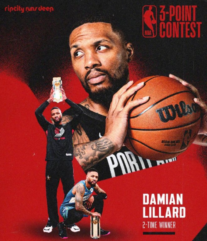 相较于扣篮大赛的名单,三分球大赛的名单就显得星光熠熠了,有布克、克尼普尔、马克西、米切尔、穆雷、波蒂斯、鲍威尔和利拉德。是的,因伤赛季报销的利拉德也进入名单了。