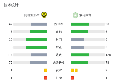 第4分钟,阿利亚加AS球队科奇吃到红牌。