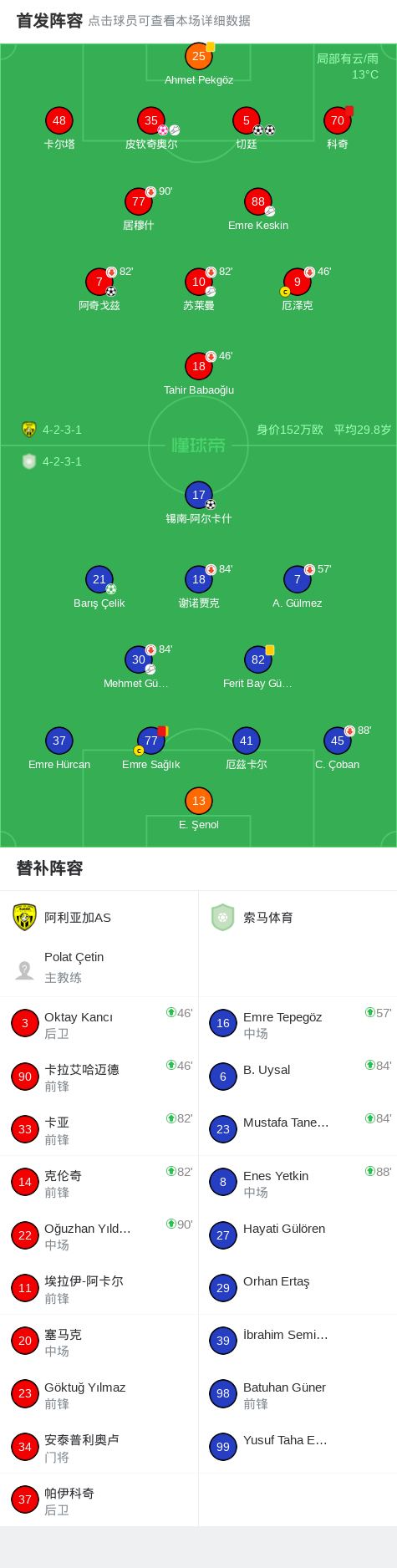 第59分钟,索马体育球员Mehmet Gündüz助攻锡南-阿尔卡什打入一球。