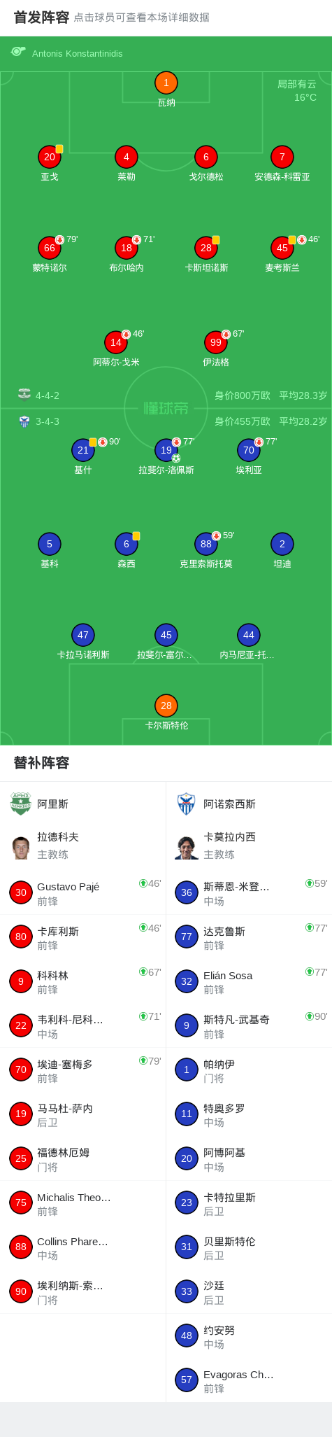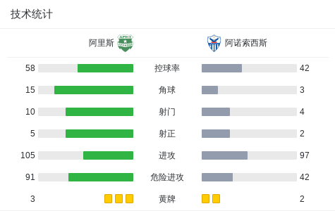 阿诺索西斯1-0阿里斯,拉斐尔-洛佩斯点射制胜
