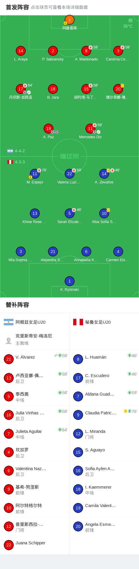 阿根廷女足U20 4-0大胜秘鲁女足U20,A. Paz梅开二度,丹尼斯-加西亚1传1射