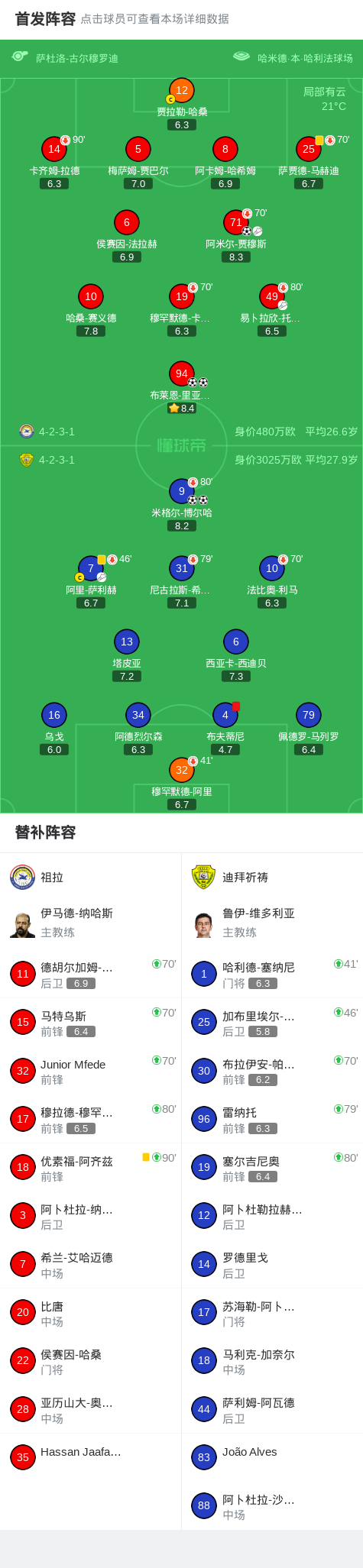祖拉3-2逆转迪拜祈祷,布莱恩-里亚斯科斯双响,阿米尔-贾穆斯建功