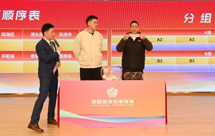 2月10日,温州市首届瓯越足球冠军联赛县(市、区)争霸赛抽签仪式在温州市工人文化宫举行,市体育局、各县(市、区)体育部门、市足球协会领导和嘉宾,特邀浙BA温州队球员代表,各县(市、区)代表队、赛事赞助商、媒体记者和球迷代表齐聚一堂,共同见证12个县(市、区)代表队分组抽签、赛程发布及赞助签约等重要环节。