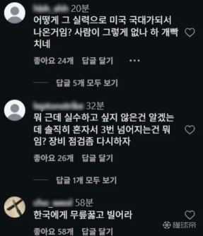 韩国网友写道:“就那水平怎么能代表美国国家队出战的?是没别人了吗,真让人火大!”