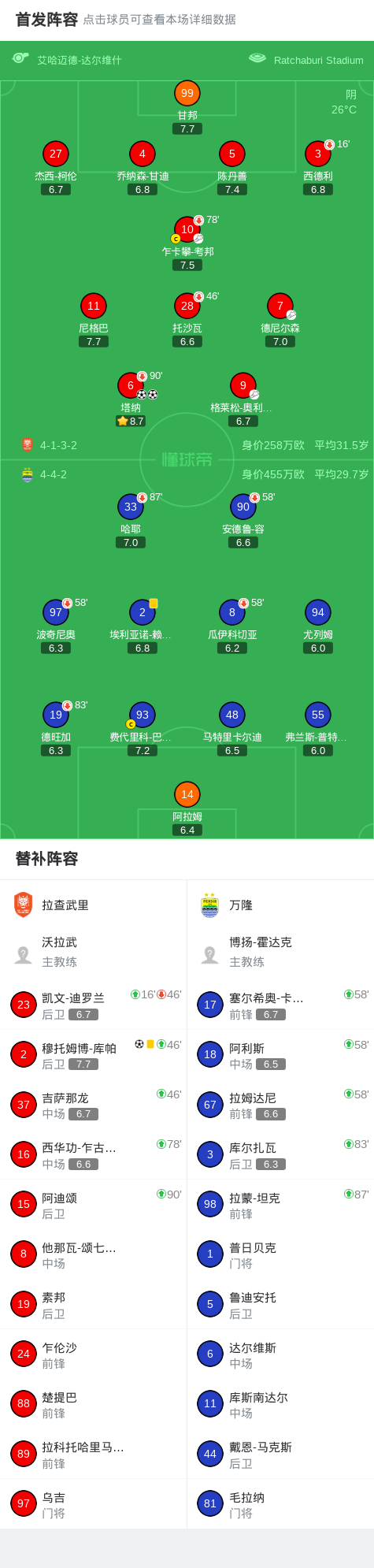 拉查武里3-0大胜万隆,塔纳梅开二度,穆托姆博-库帕破门