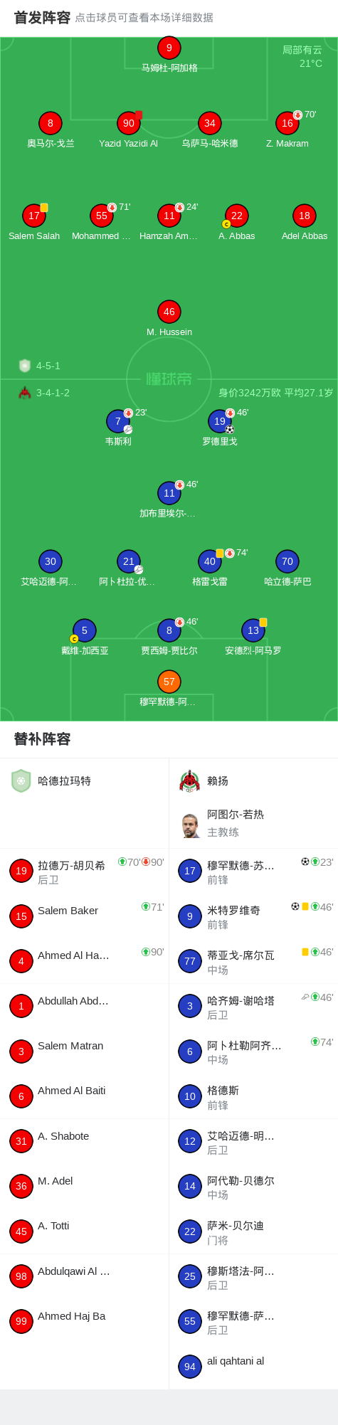 第21分钟,哈德拉玛特球队Yazid Yazidi Al吃到红牌。