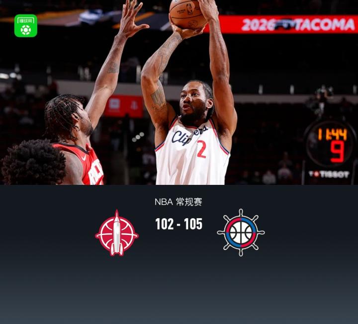 快船105-102逆转火箭,伦纳德2+1绝杀&27+12,杜兰特21+8+8失误