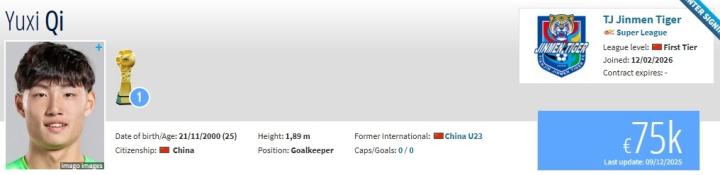 德转:原南京城市门将齐雨熙加盟天津津门虎盖坦92026-02-12 18:00北京时间2月12日,德转更新,原南京城市门将齐雨熙加盟天津津门虎。齐雨熙现年25岁,司职门将,曾效力过江苏(已解散)、黑龙江冰城(定南赣联)、南京城市。在2023赛季齐雨熙加盟南京城市,在2025赛季结束后球员与俱乐部合同期满离队,效力期间共为球队在各项赛事出场59次,完成16次零封。现在他在德转上的身价为7.5万欧元。展开更多