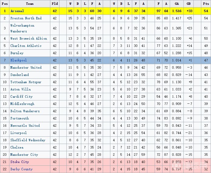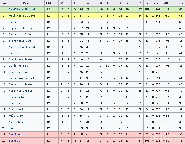 这两个图片,能初步看出那一年的英格兰联赛的格局。