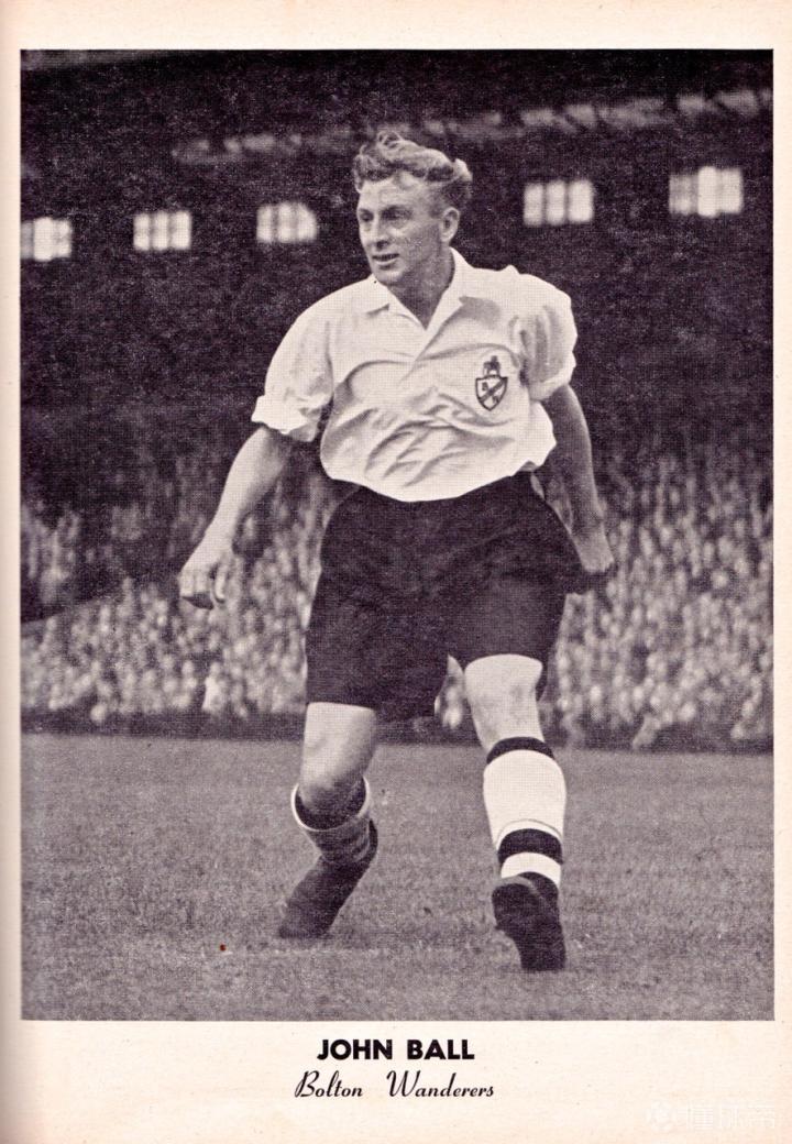右后卫,约翰·鲍尔,1925- 。1950-1958年效力于博尔顿,出场200次,打进2球。他曾在1948-1950年间效力于曼联,但是出场机会不多。