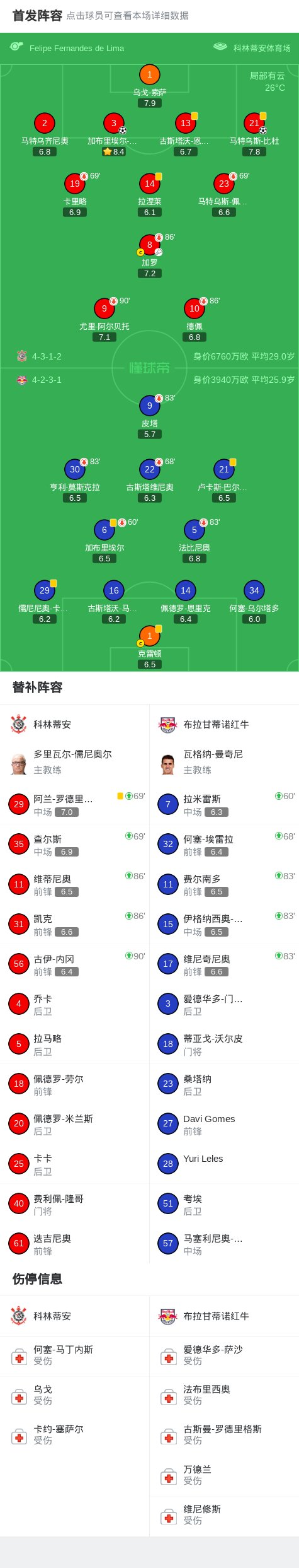 北京时间2月13日巴西足球甲级联赛 联赛 第3轮,科林蒂安主场对阵布拉甘蒂诺红牛。科林蒂安加布里埃尔-保利斯塔破门,马特乌斯-比杜破门。最终比分科林蒂安 2-0 布拉甘蒂诺。