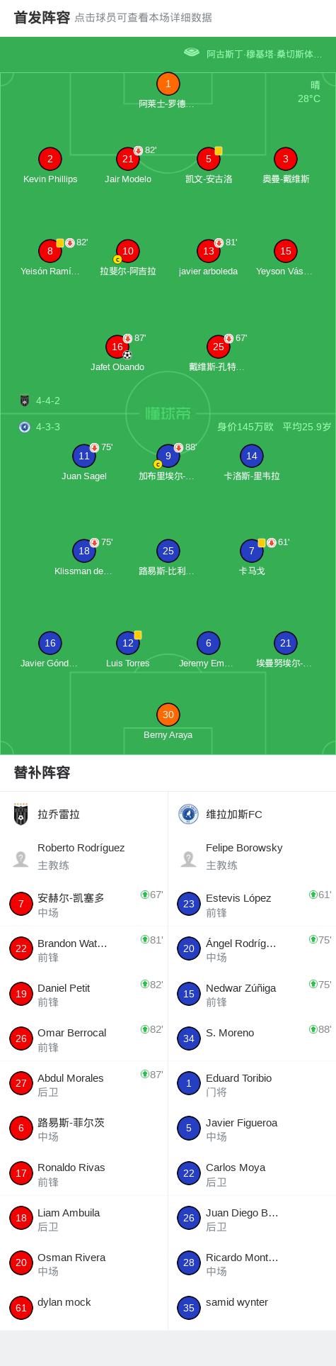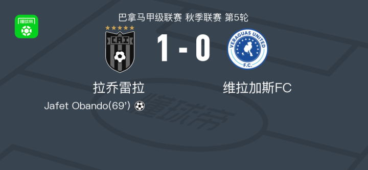 拉乔雷拉1-0维拉加斯FC,Jafet Obando助球队取胜战报bot @懂球帝02-13 09:17北京时间2月13日巴拿马甲级联赛 秋季联赛 第5轮,拉乔雷拉主场对阵维拉加斯FC。拉乔雷拉Jafet Obando破门。最终比分拉乔雷拉 1-0 维拉加斯FC。点击查看本场比赛详细数据>>点击查看巴拿甲完整积分榜>>精彩瞬间第69分钟,拉乔雷拉球员Jafet Obando打入一球。 球队阵容 技术统计 展开更多