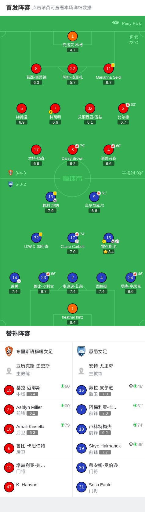 悉尼女足4-0大胜布里斯班狮吼女足,Skye Halmarick、赖利-坦纳破门